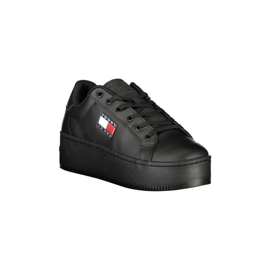 TOMMY HILFIGER Scarpe Sneakers Donna Nere con Zeppa 5 cm e Plantare Removibile