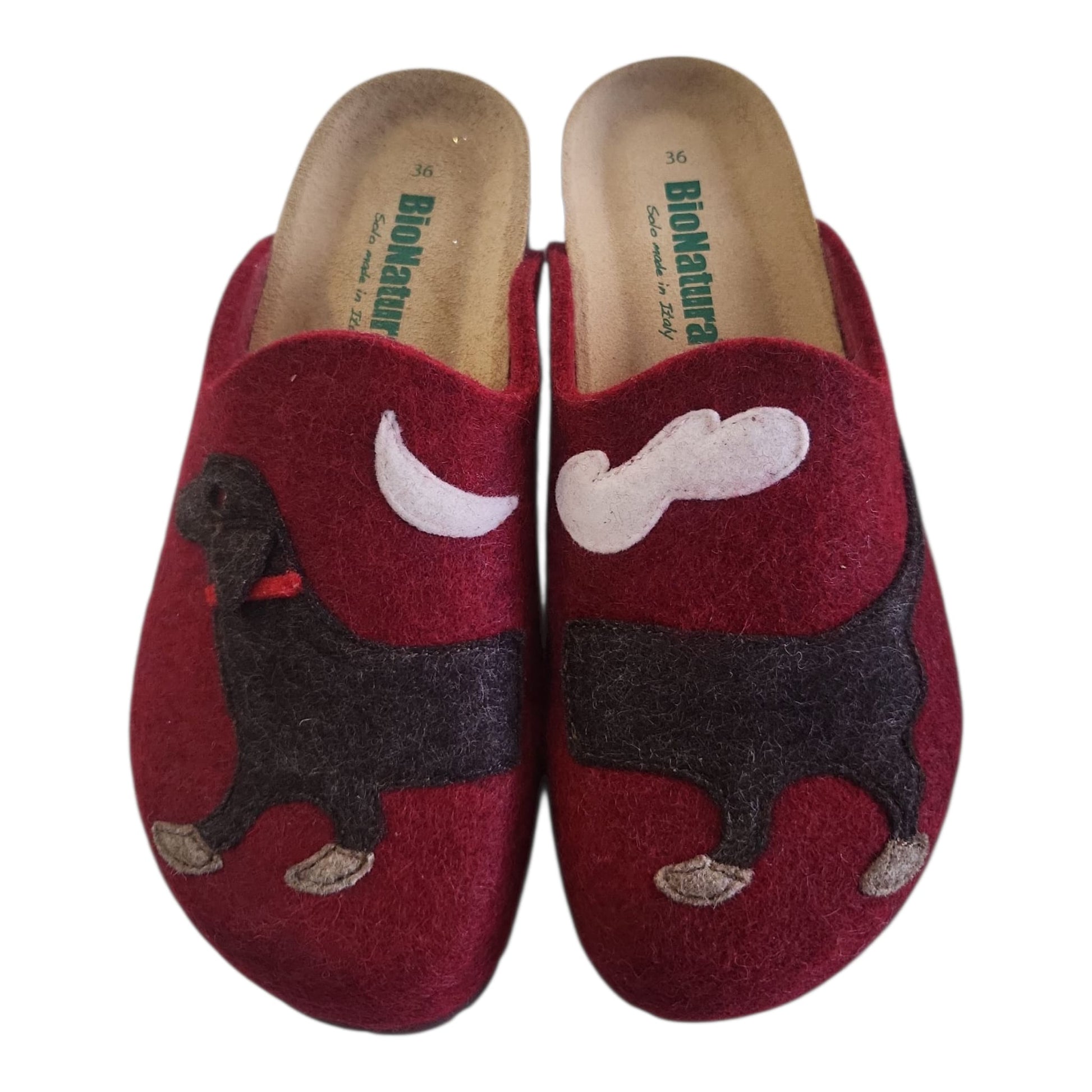 Bionatura - Calda e comoda ciabatta invernale! La tomaia è in feltro lana con applicazione di un disegno cucito in lana sulla tomaia stessa. Si sviluppa su un plantare slanciato, che rende la camminata ancora più confortevole .A completare il tutto, il sottopiede imbottito in pelle scamosciata per un comfort unico. Altezza: 40 mm. Tomaia: feltro lana. Soletto: imbottito in pelle scamosciata. Suola: micro.