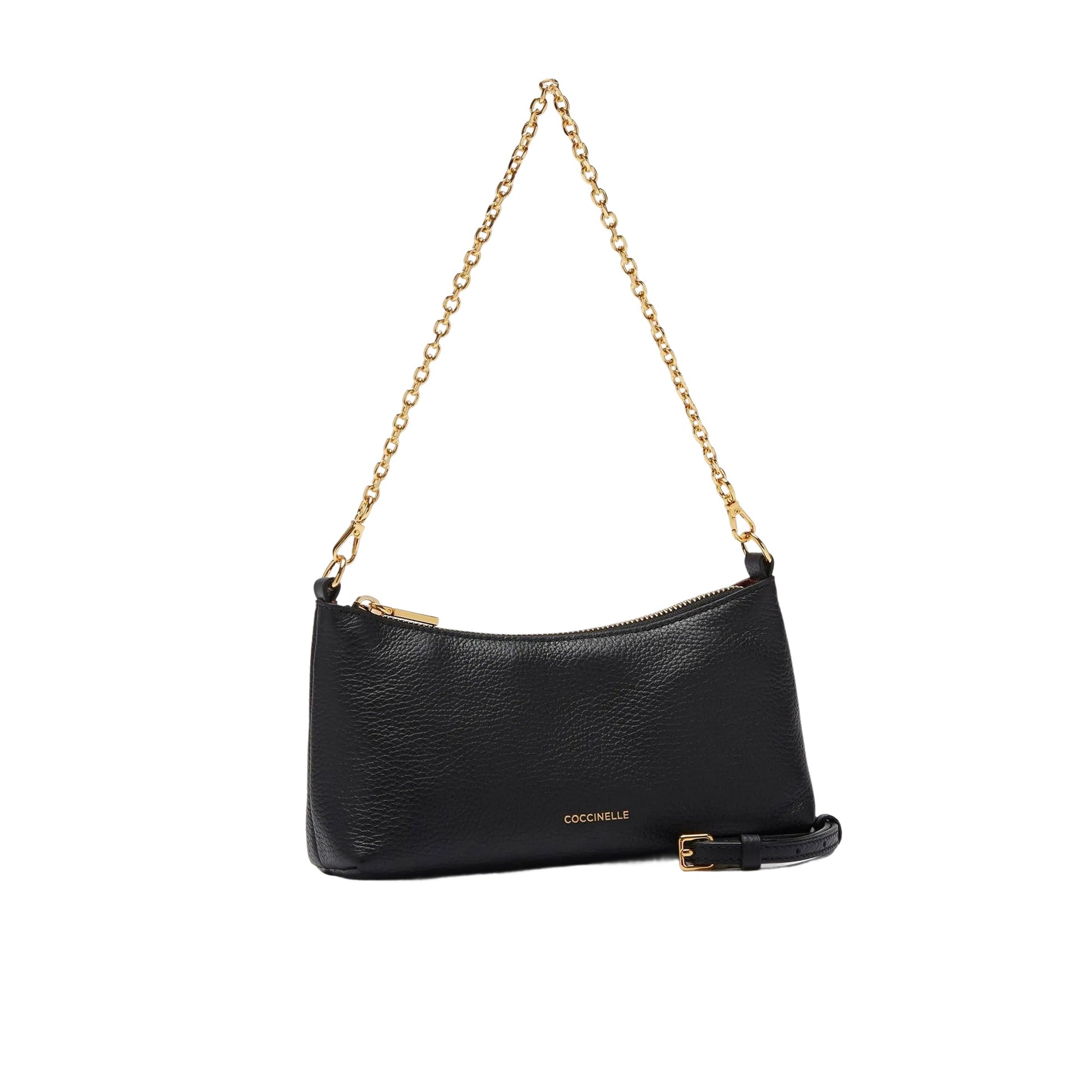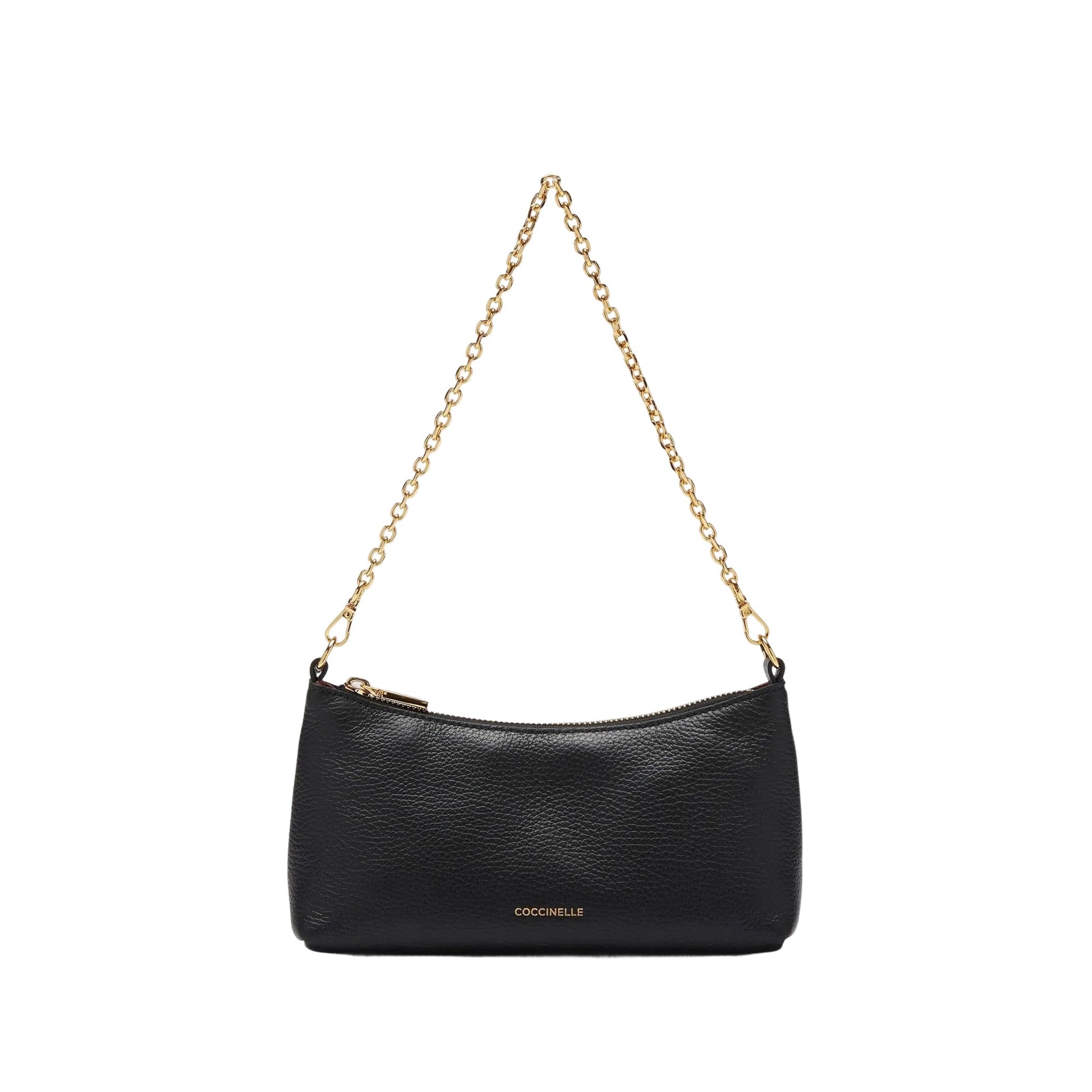Contemporanea e versatile, la minibag Coccinelle Aura è l’accessorio ideale per accompagnarti ogni giorno con stile. Il manico a catena dorata aggiunge un tocco elegante perfetto anche per la sera, mentre la tracolla regolabile in pelle assicura il massimo comfort nella quotidianità.