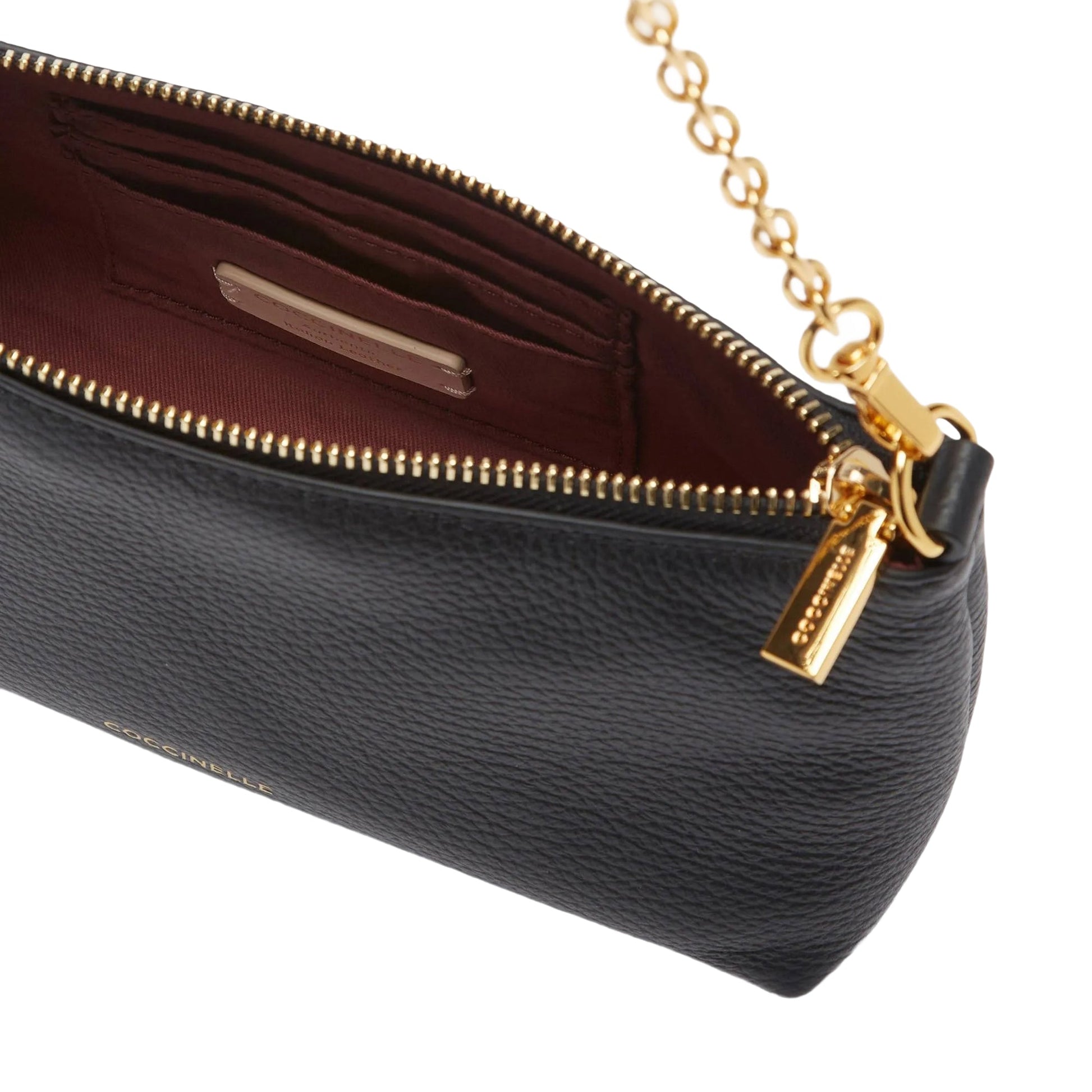 COCCINELLE Borsa Donna Nera con Catena e Tracolla Regolabile, In Vera Pelle, Aura