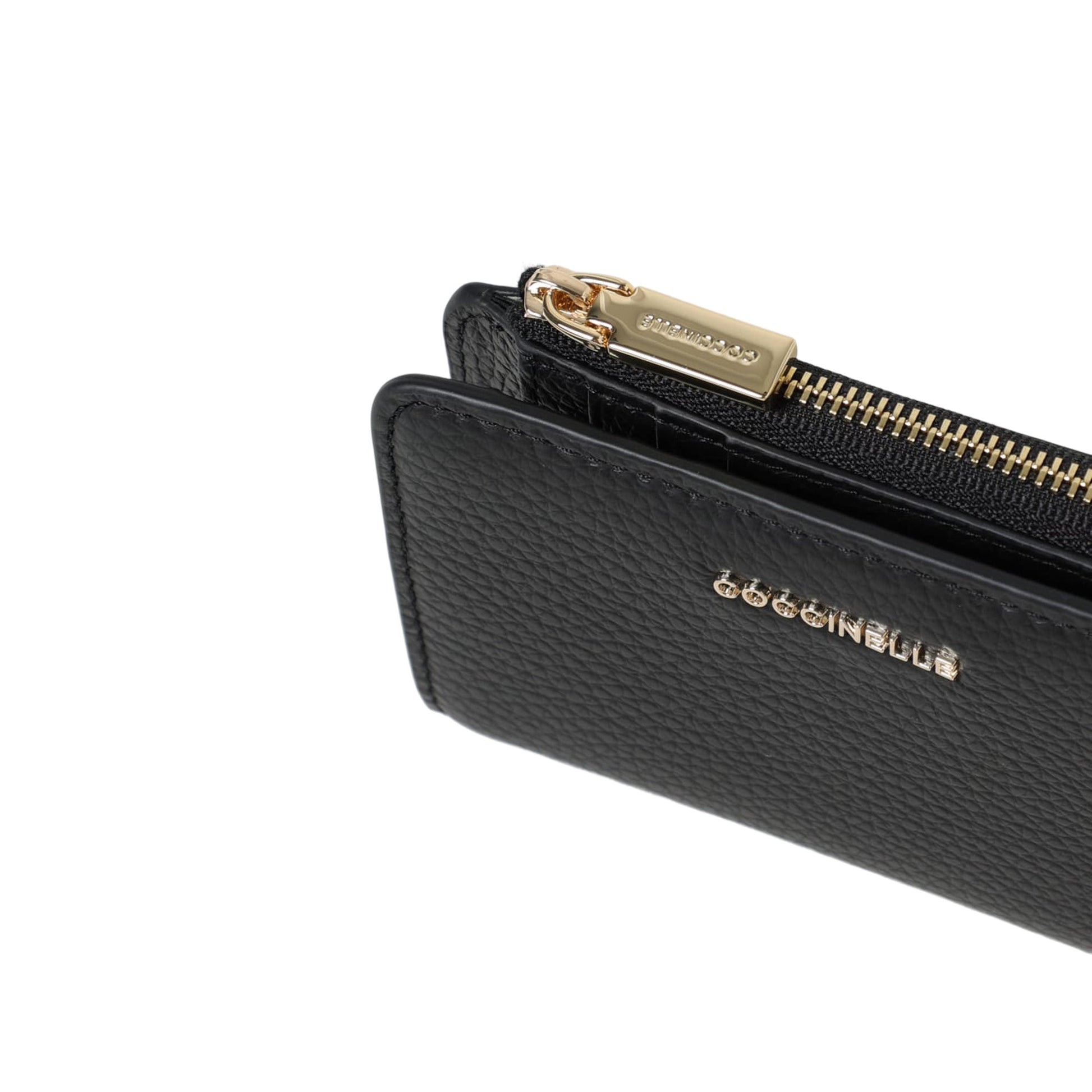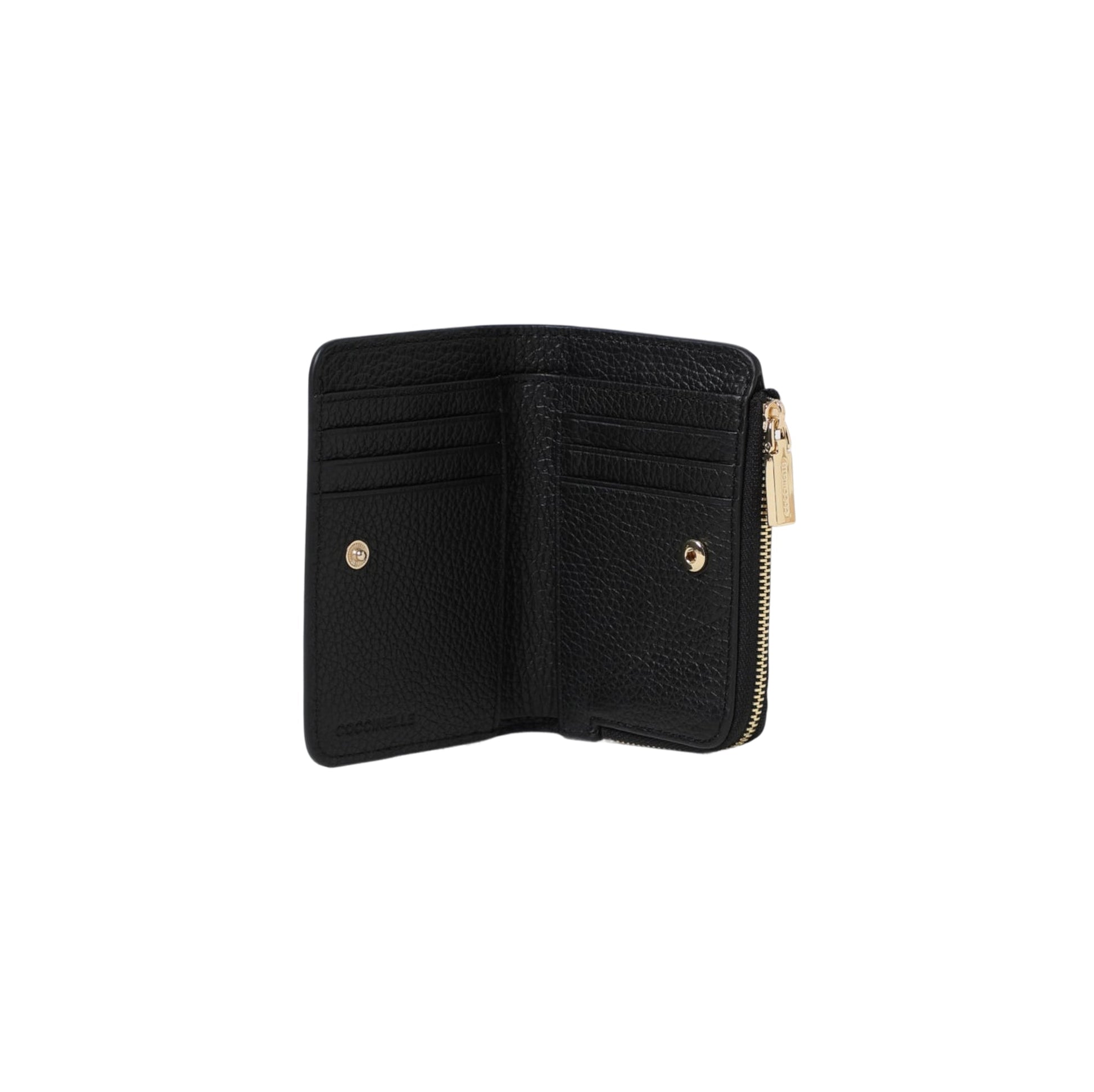 COCCINELLE Portafoglio Donna Piccolo Nero, In Vera Pelle, Metallic Soft Small