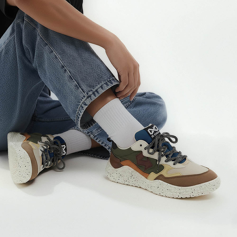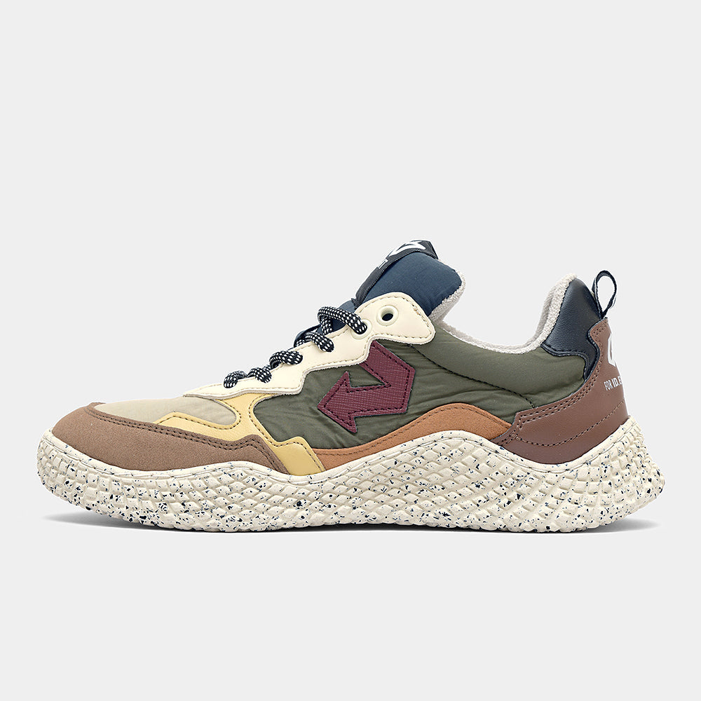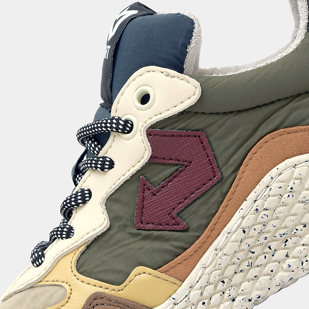 Ispirata ai colori delle foglie invernali, HANA FROSTED LEAVES abbina il verde della tomaia a dettagli marroni, arancio e una freccia bordeaux che cattura lo sguardo. Una sneaker decisa e ricca di sfumature, realizzata con poliestere riciclato idrorepellente, Uppeal (mela) e BioVeg (mais). Il sottopiede antibatterico e antiodore offre freschezza e comodità in ogni momento.