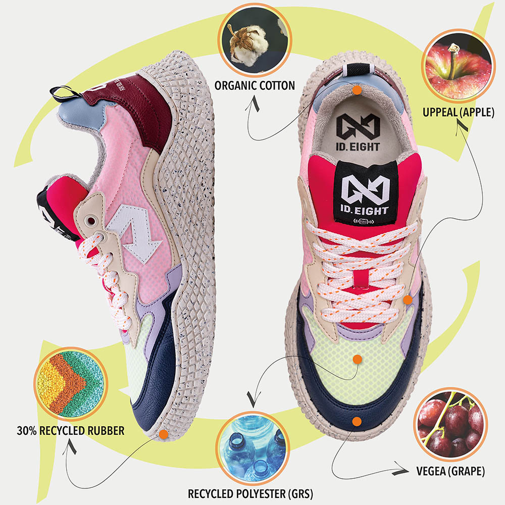 Una vera esplosione di colore! Questo abbinamento cattura l'attenzione con un mix audace ed eccentrico: Hana Mix Orange è realizzata in poliestere riciclato, Uppeal (biobased con scarti di mela) e Vegea (biobased con scarti di uva) ed è prodotta eticamente in Portogallo. Il comfort è garantito grazie al sottopiede antibatterico e antiodore integrato, che dona una sensazione di freschezza duratura che ti accompagna per tutto il giorno, mantenendo i tuoi piedi freschi e privi di odori.