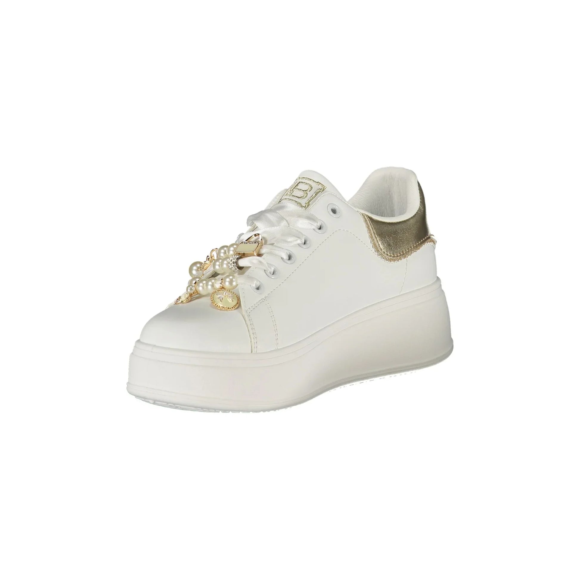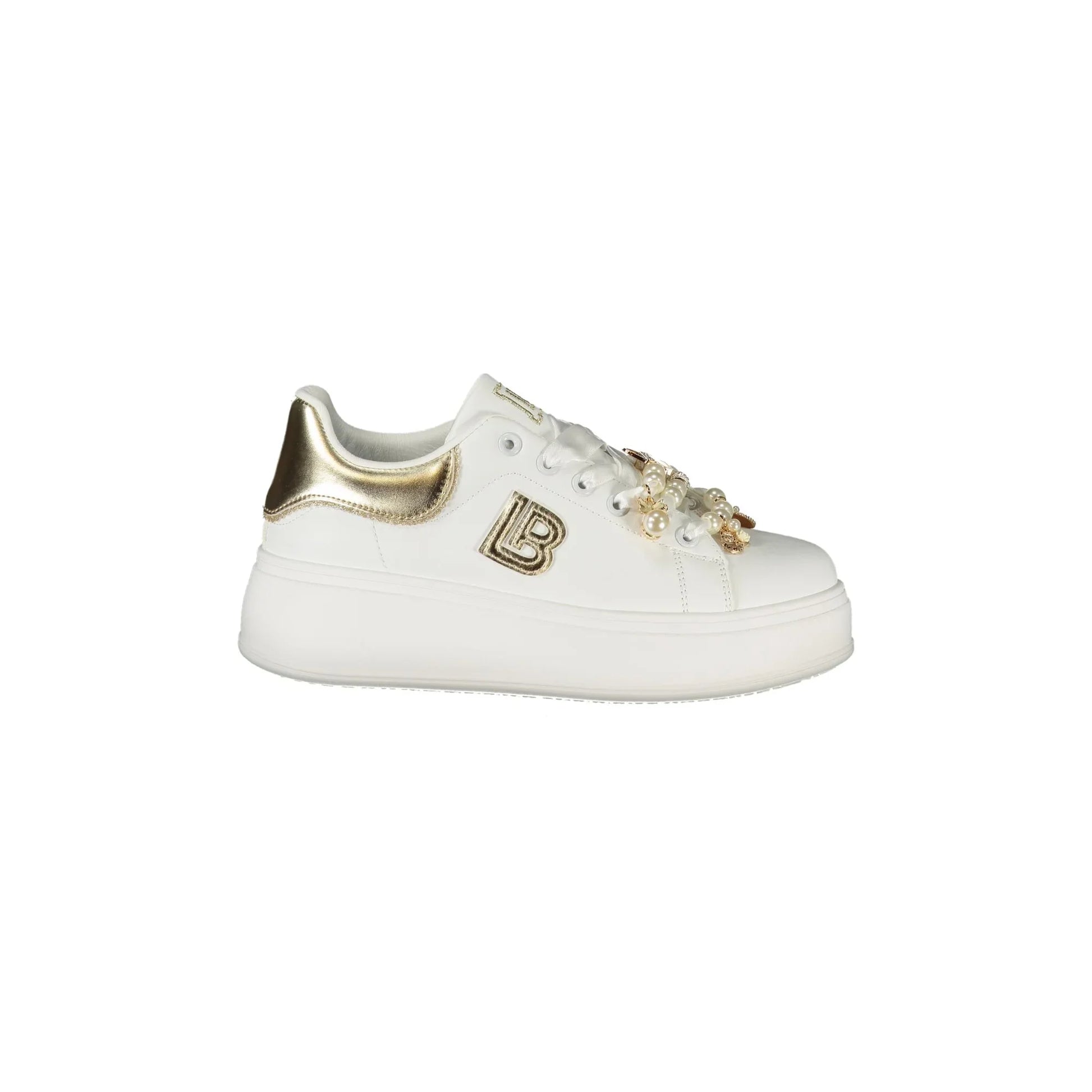 Sneakers Laura Biagiotti con plateau 4 cm e dettagli a contrasto. Design casual con lacci e applicazione logo per un look moderno e confortevole.