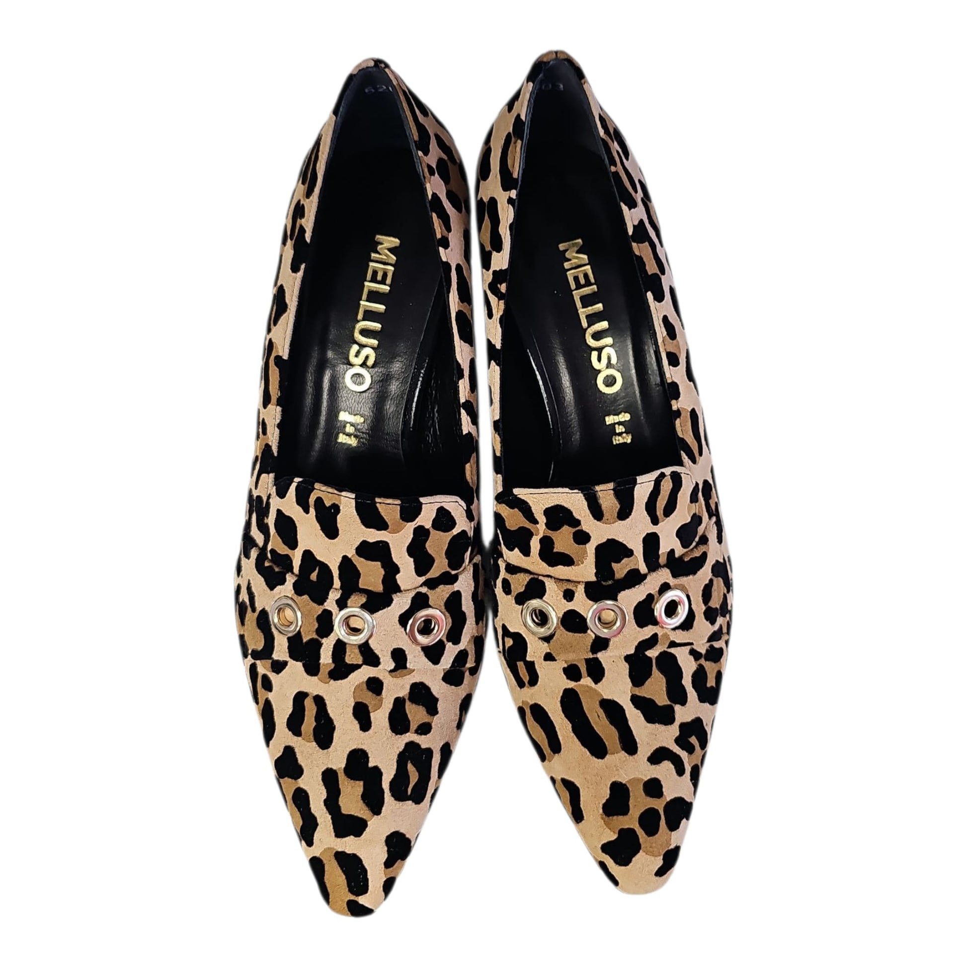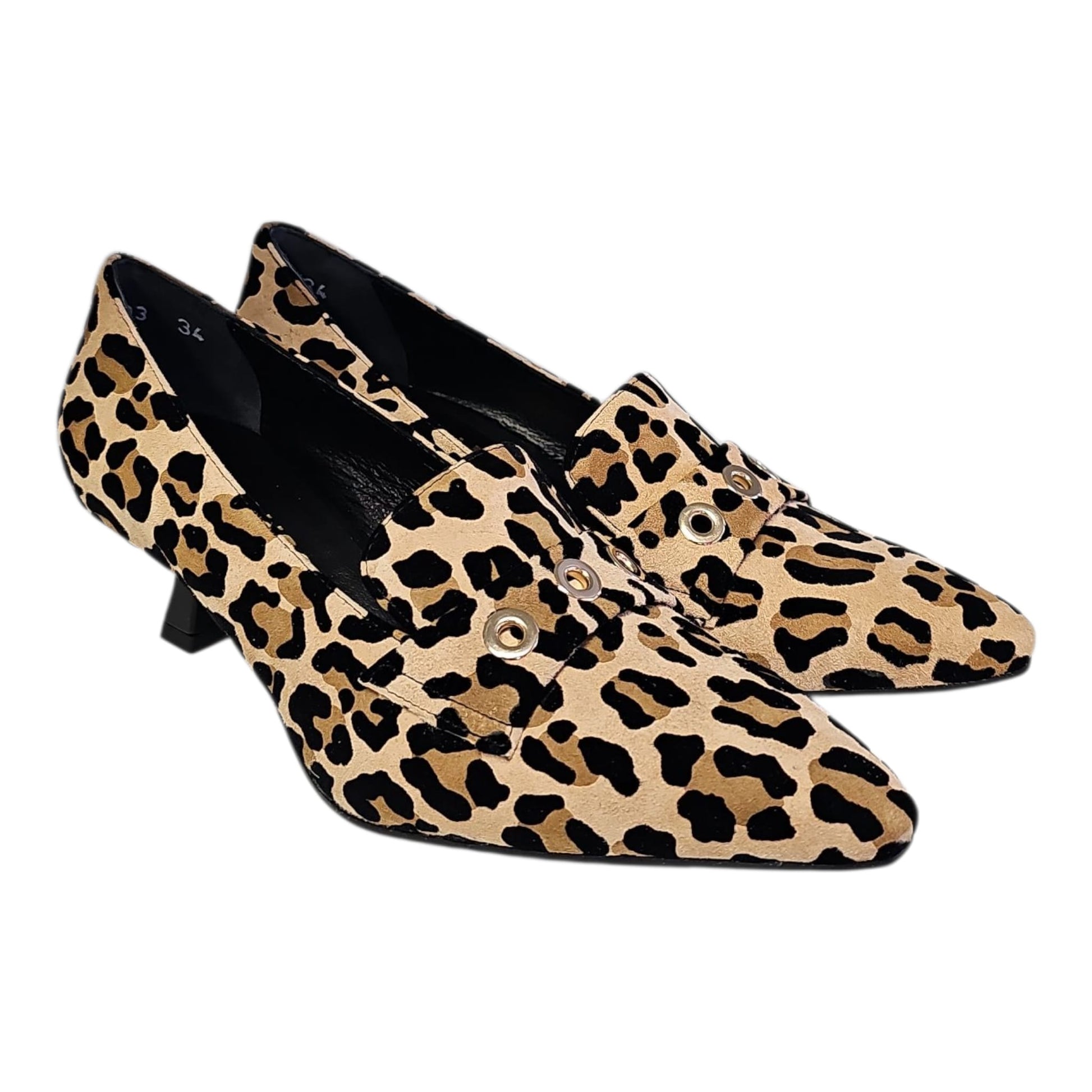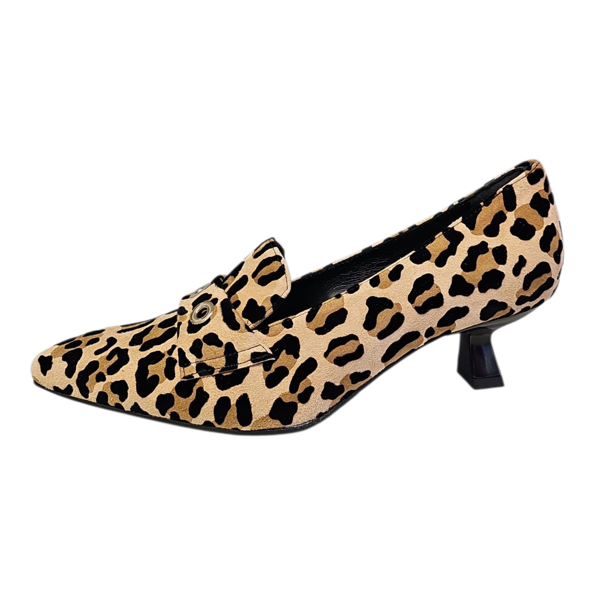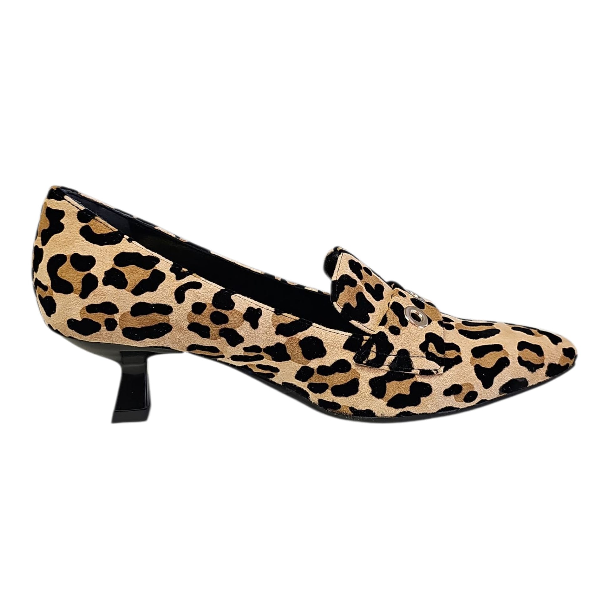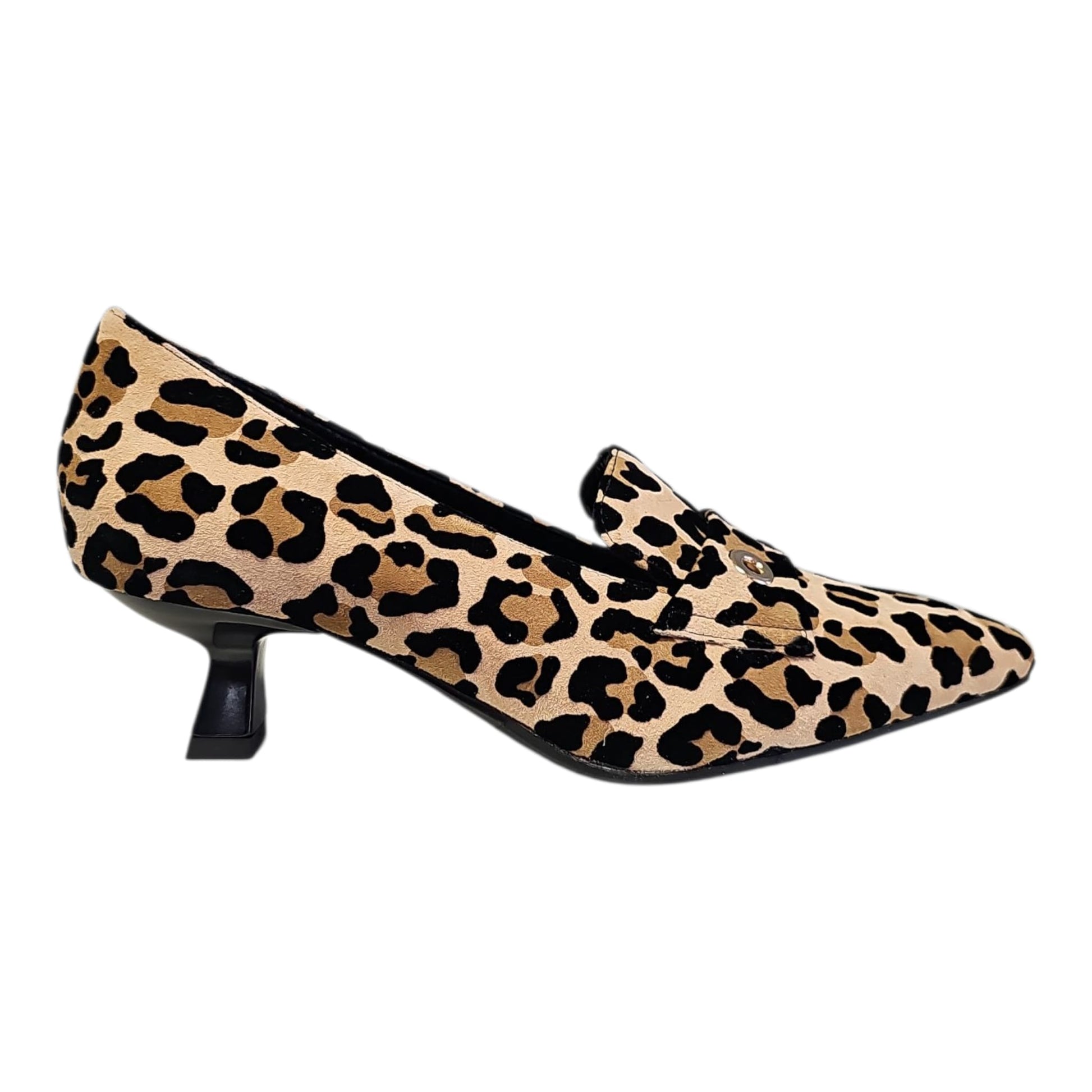 Un modello straordinariamente glamour realizzato in camoscio con stampa leopardata.