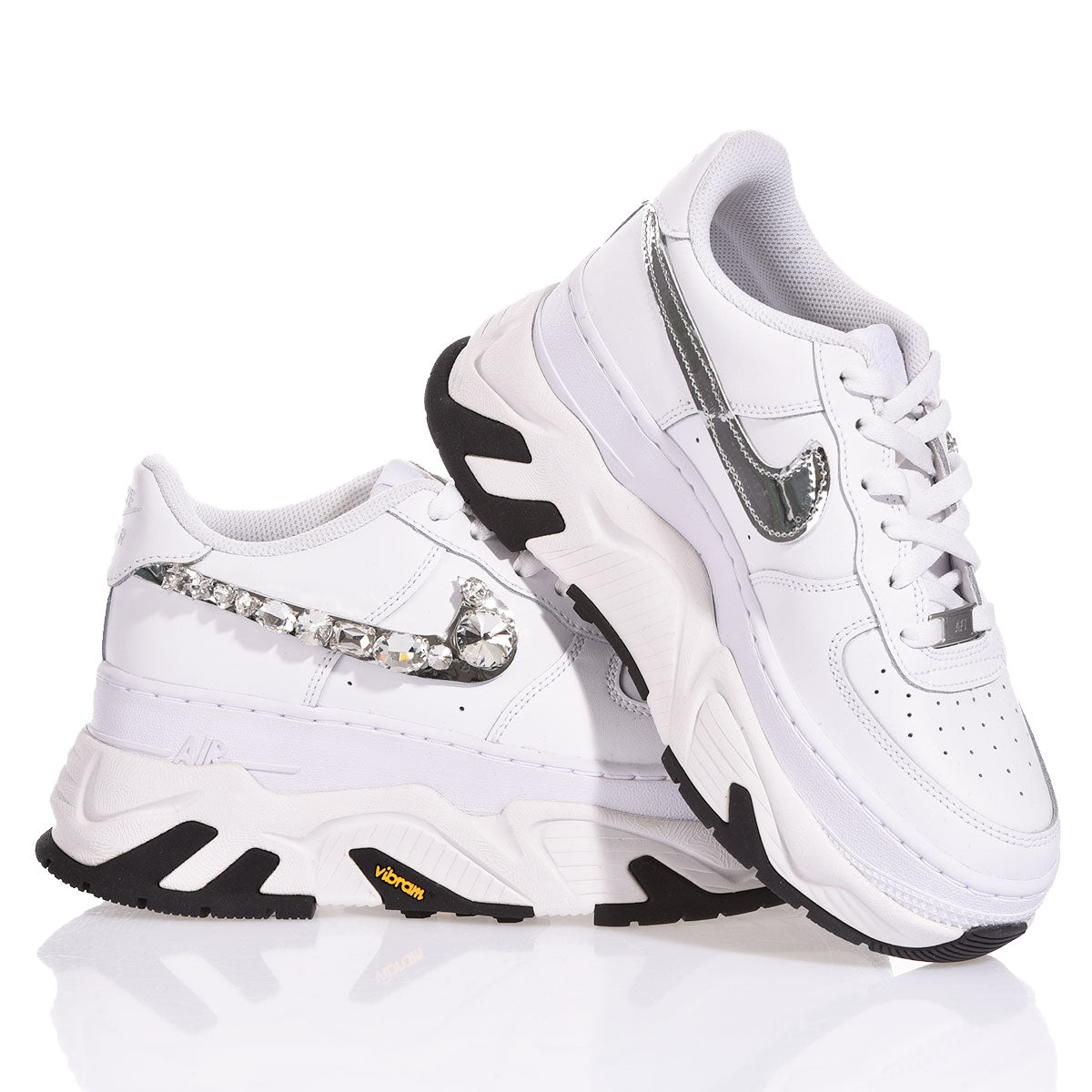 Nike Air Force 1 Vibram Jewel è la sneaker che ridefinisce il concetto di stile elevato. L’iconico modello Nike si rinnova grazie alla speciale suola Vibram, progettata per garantire un comfort superiore e un profilo rialzato, che slancia la silhouette e dona un impatto deciso ad ogni passo. Lo Swoosh è un vero gioiello, impreziosito da pietre incastonate con cura, che trasformano il dettaglio iconico in un elemento brillante e ricercato.