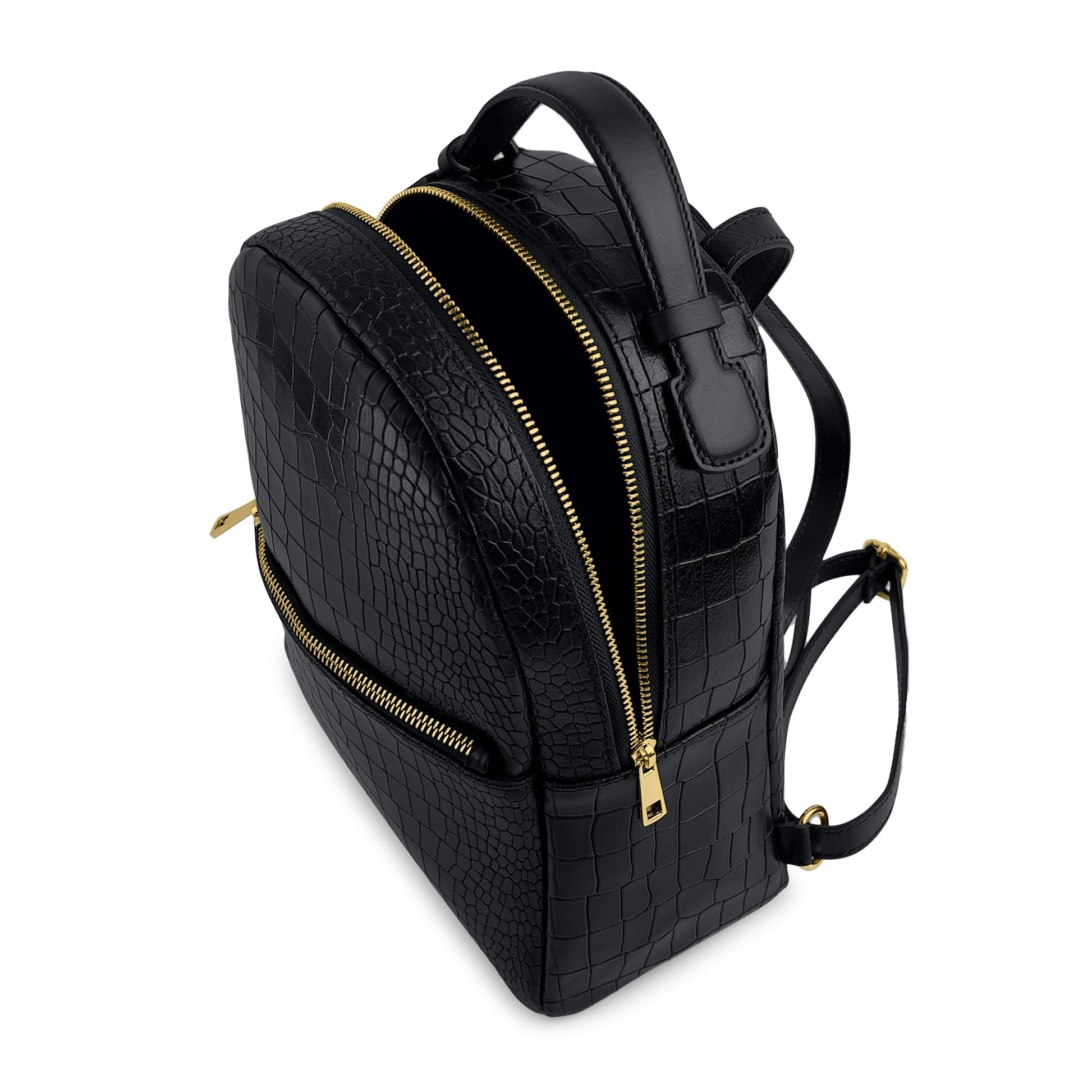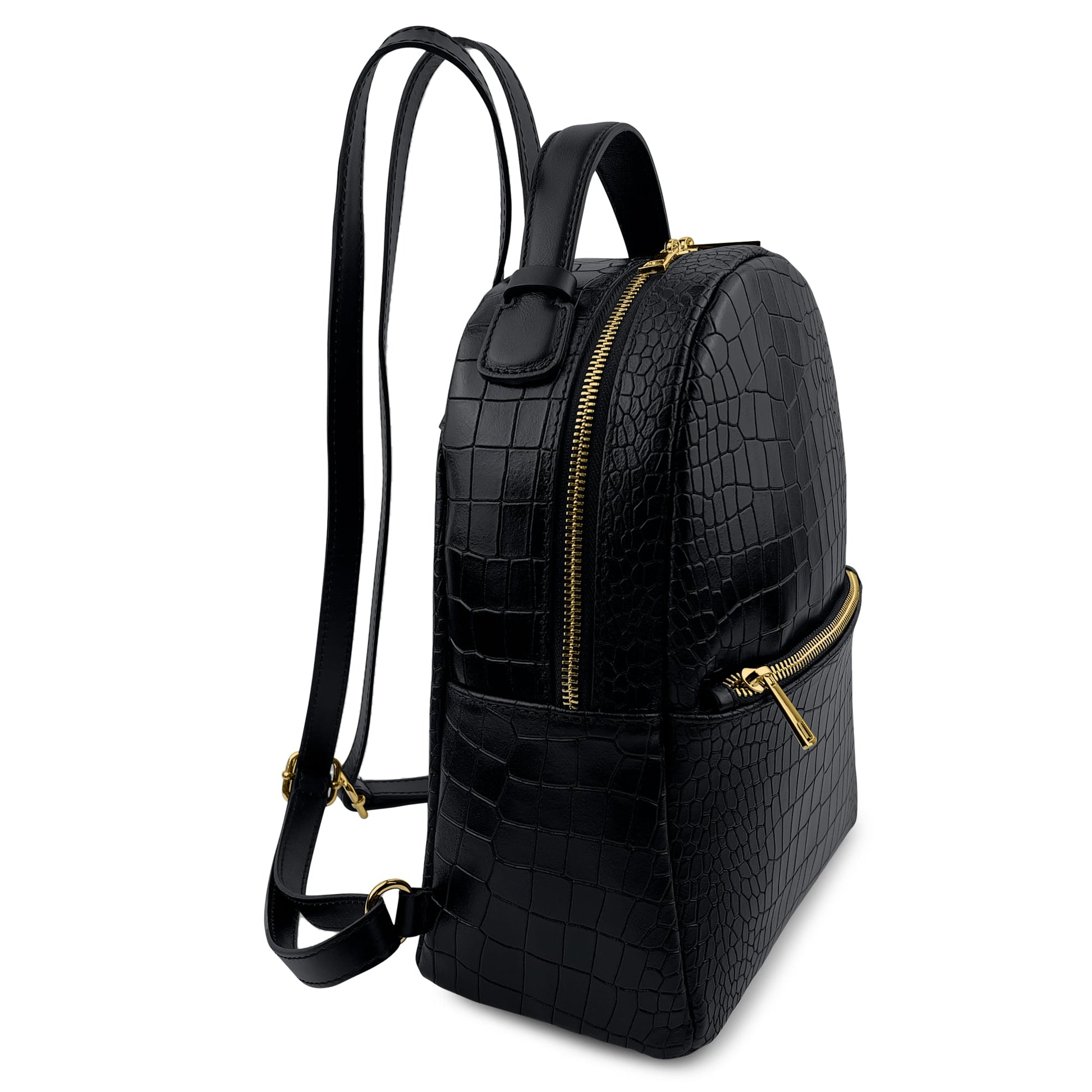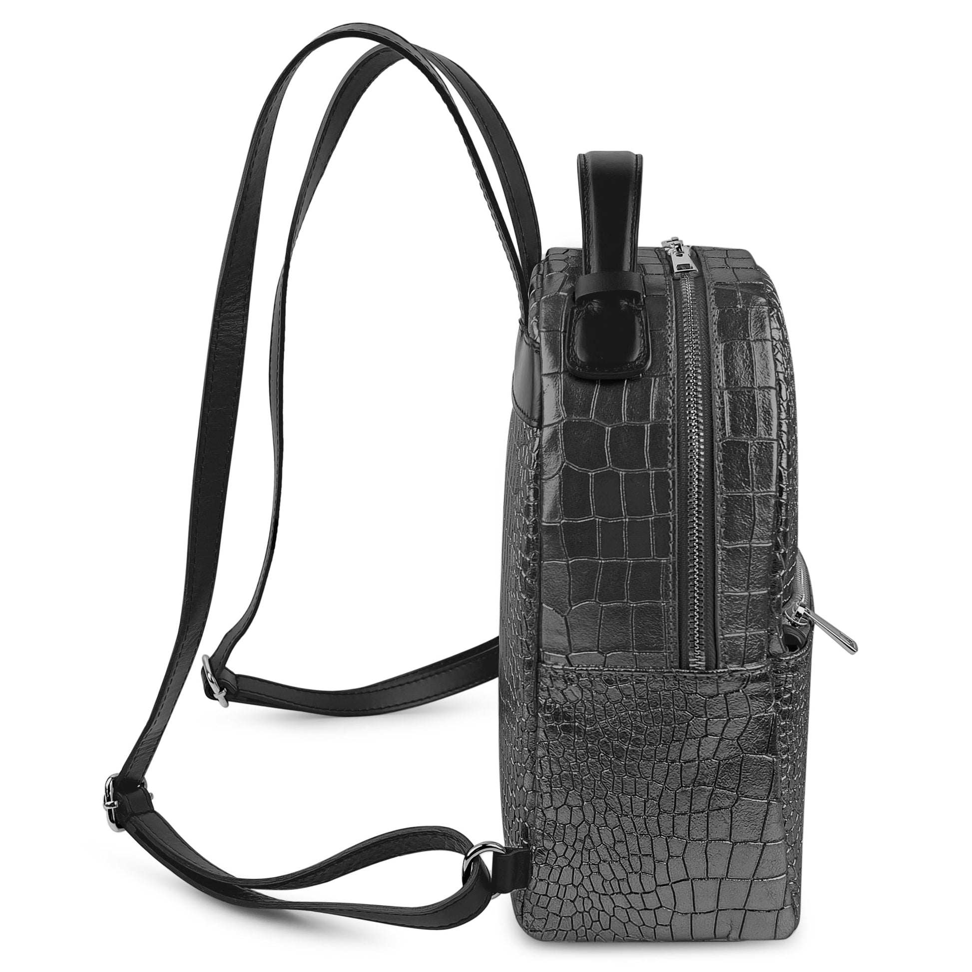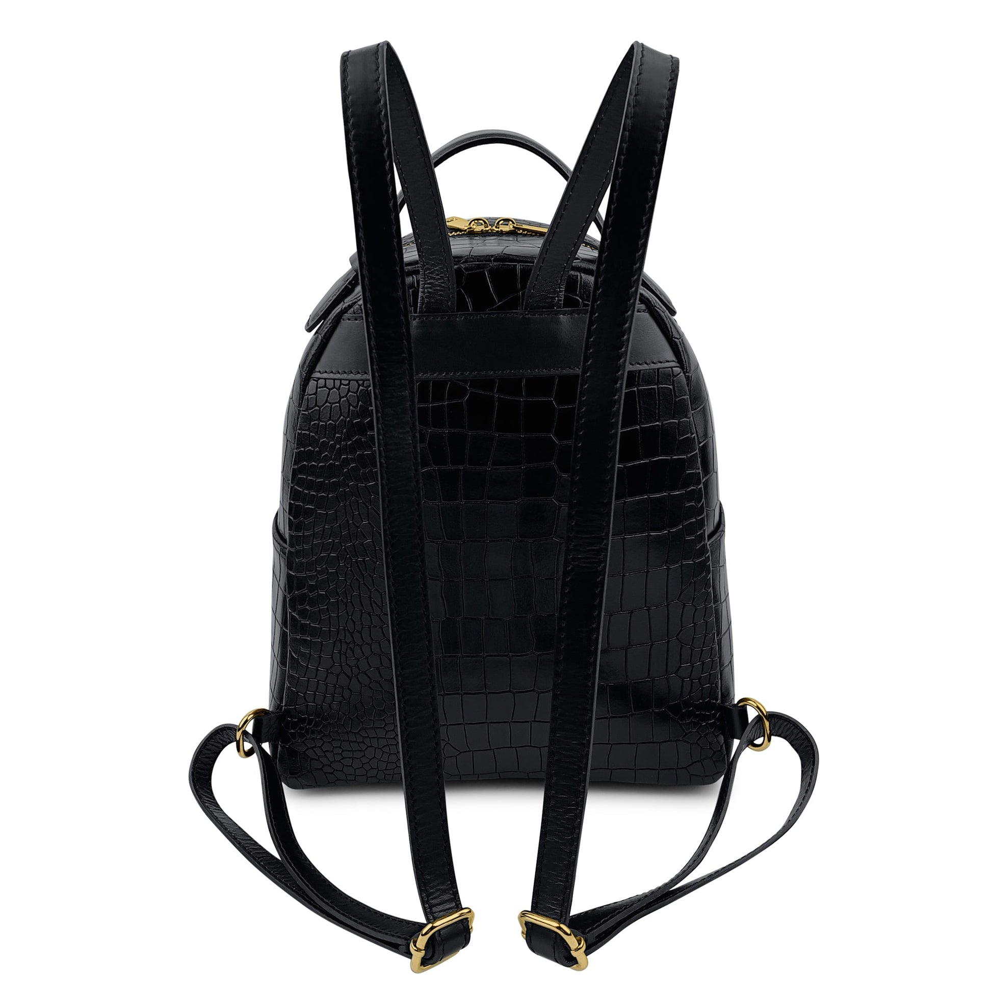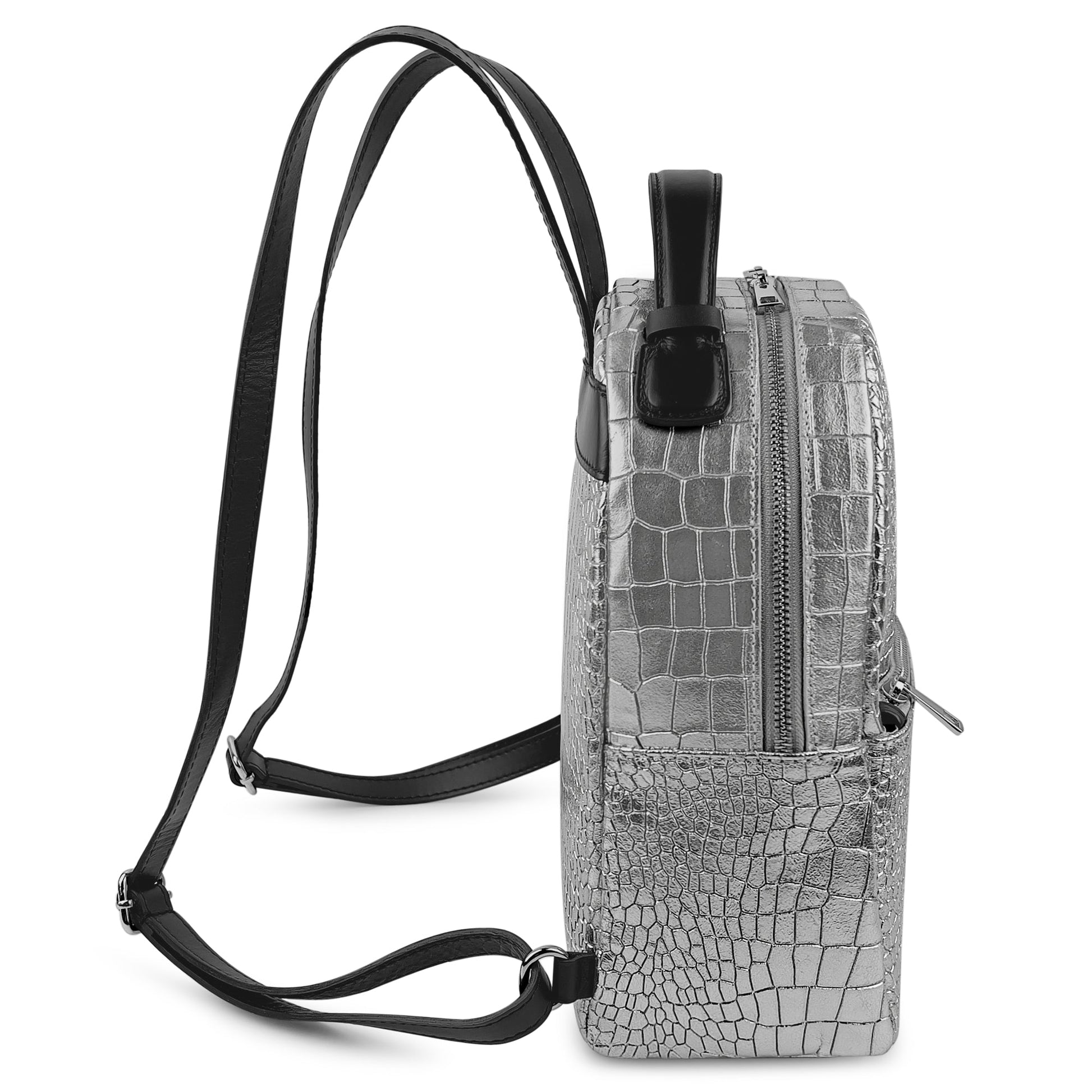 Lo zaino Amelia è l'accessorio perfetto per chi cerca eleganza e funzionalità in un unico pezzo. Realizzato in Italia in vera pelle semi-rigida con una raffinata stampa coccodrillo laminato, unisce uno stile moderno alla praticità. Dotato di spallacci regolabili e una maniglia in pelle, Amelia è comodo da indossare e facile da portare a mano. I dettagli in metallo color nichel aggiungono un tocco sofisticato, mentre la pratica tasca esterna offre spazio aggiuntivo per gli accessori essenziali. All’interno, uno scomparto capiente ospita una tasca con cerniera e una piccola tasca per l’organizzazione perfetta. L’etichetta interna attesta l’originalità di questo accessorio esclusivo, realizzato con cura artigianale. Dimensioni: altezza 29 cm, lunghezza 24 cm, larghezza 12 cm.