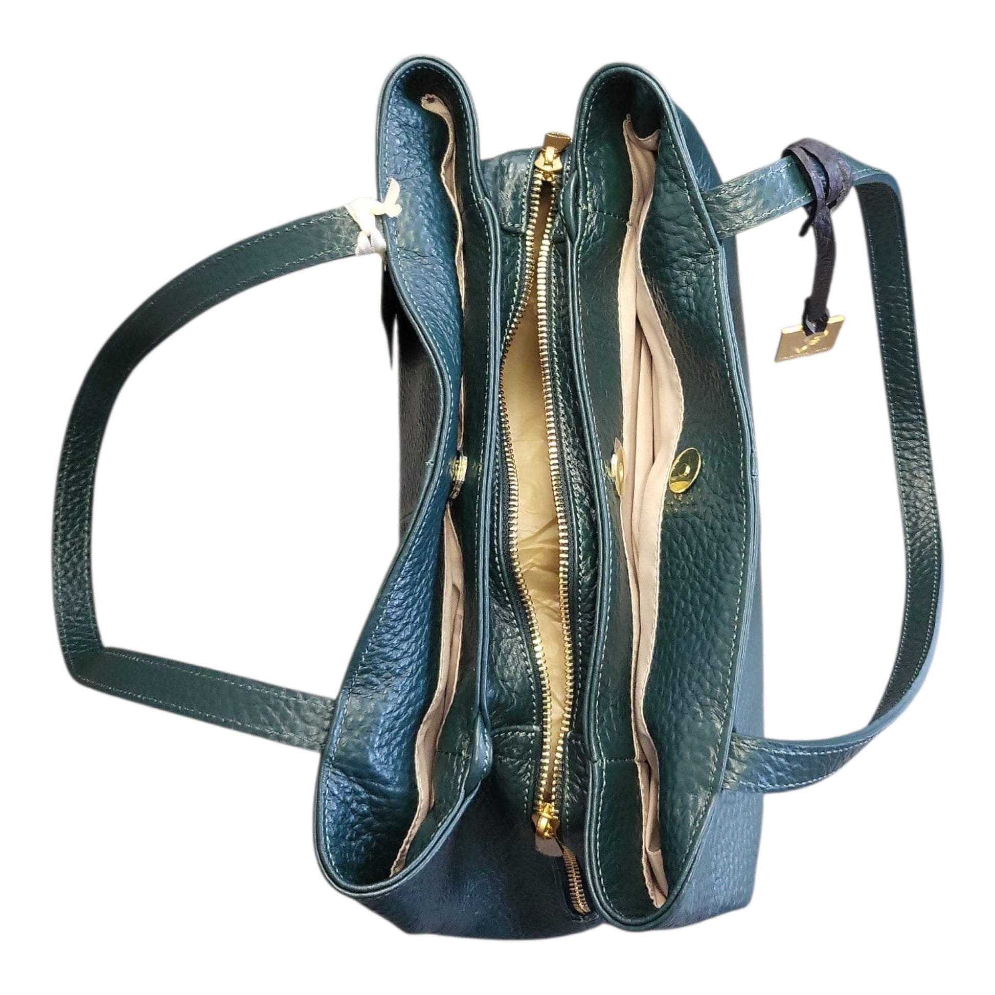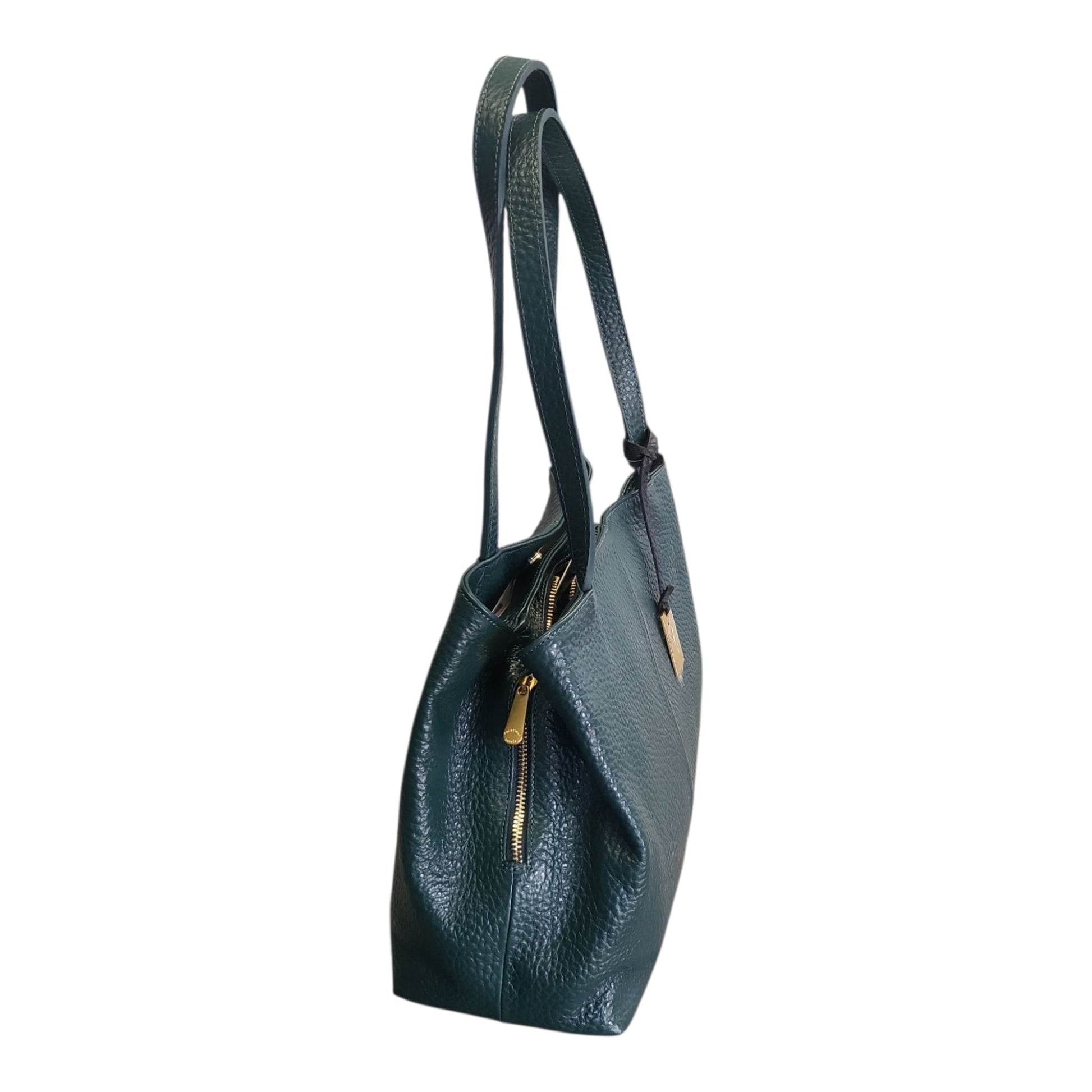 Pelletteria Veneta – Shopper Donna in Pelle Martellata Verde con 3 Scomparti e Doppia Tracolla (37x27x15 cm) – Made in Italy