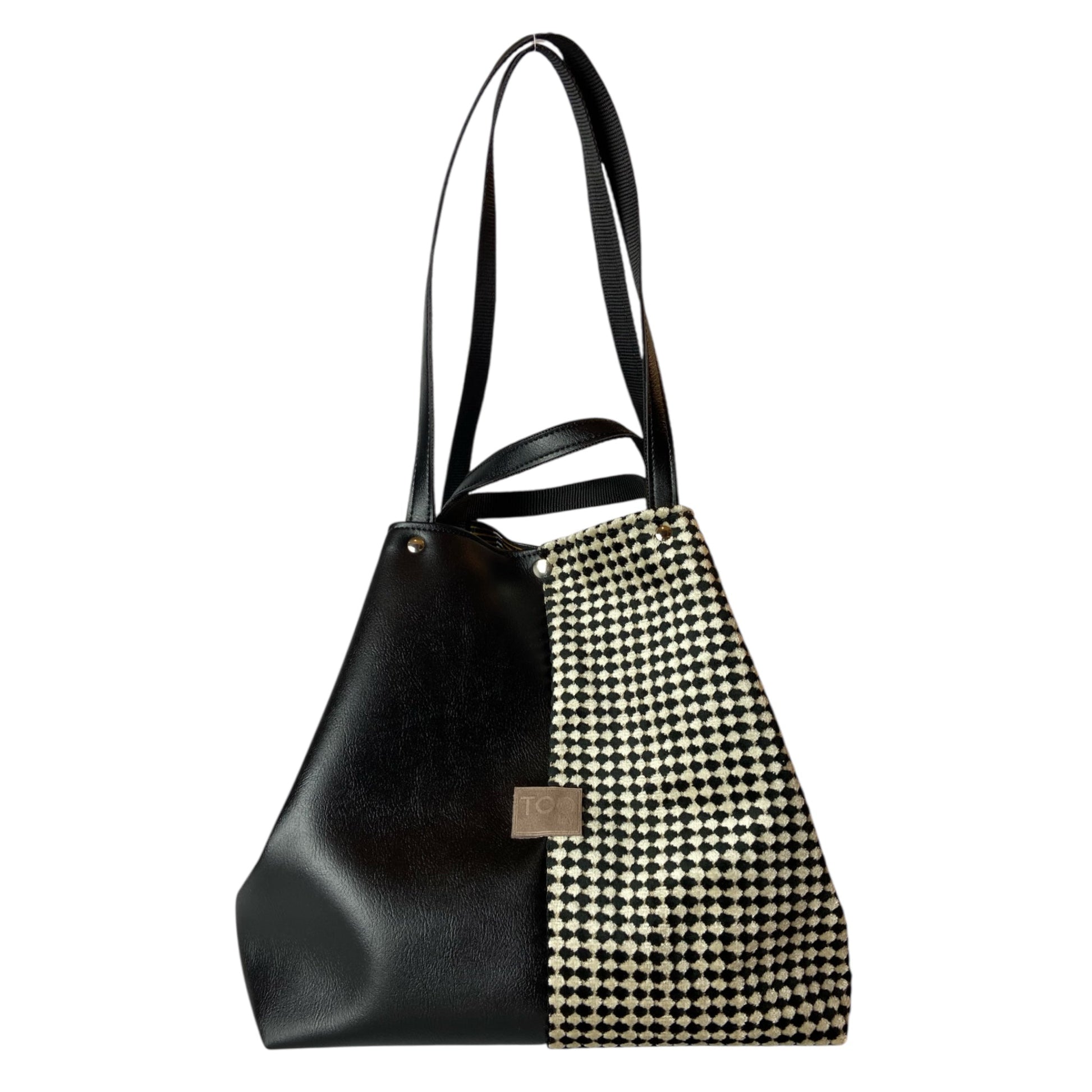 Tote Pied-de-Poule Black - Borsa donna a mano e a spalla