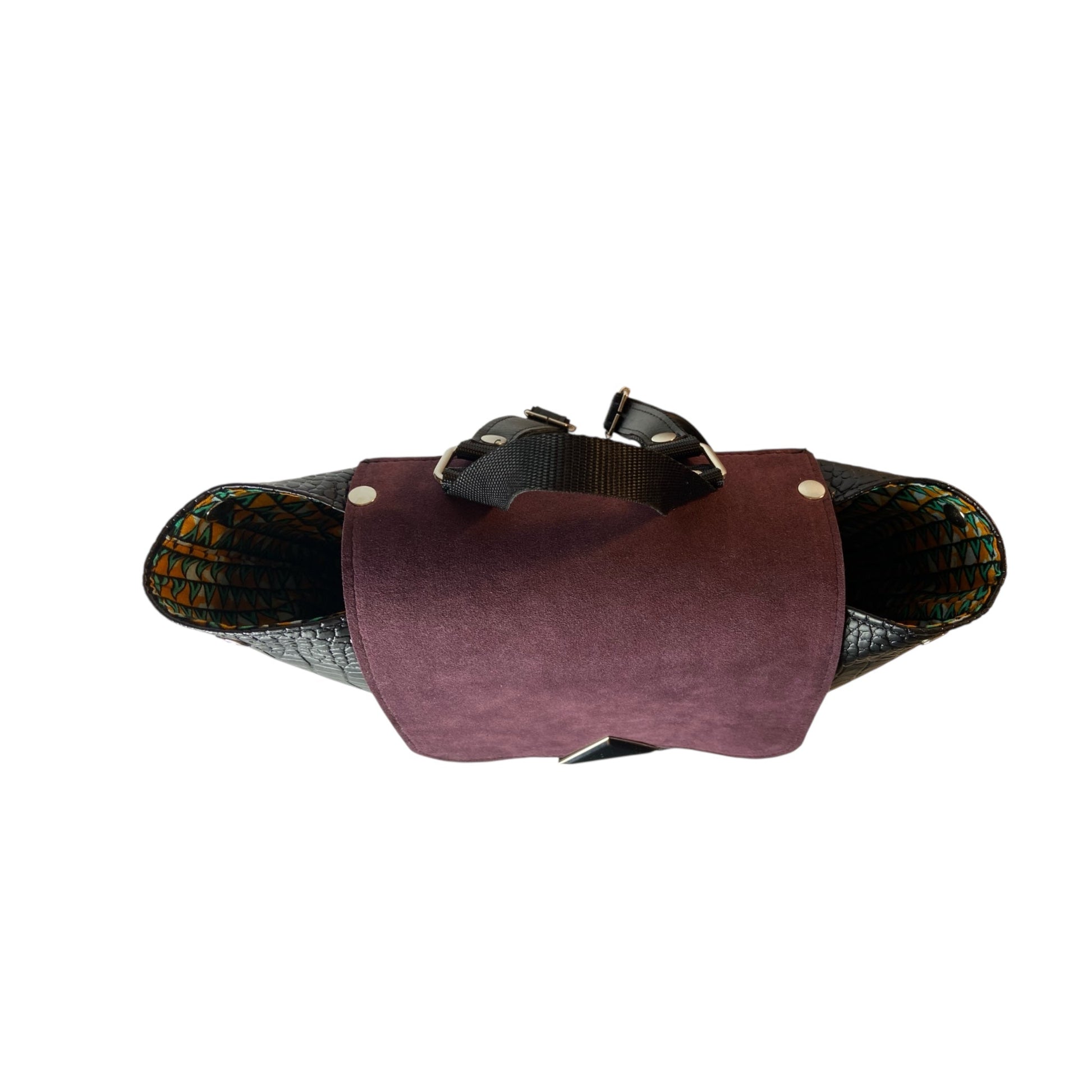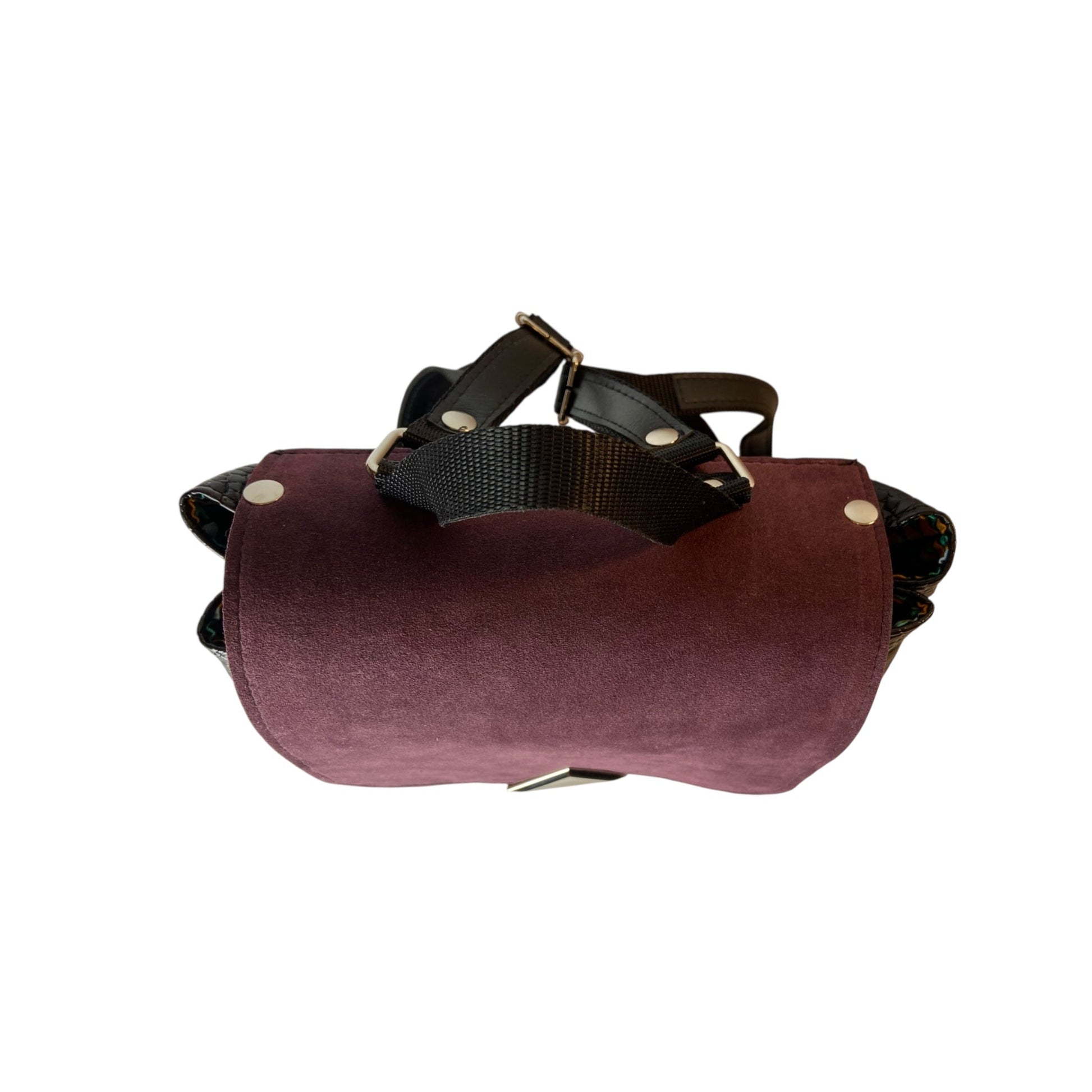 Un dettaglio esclusivo è dato dai bottoni laterali a pressione, che permettono di trasformare e modulare l’apertura superiore dello zaino, adattandolo a diverse esigenze di spazio e stile. L’interno, foderato in cotone wax 100%, rende ogni creazione un pezzo unico grazie alle fantasie sempre differenti.