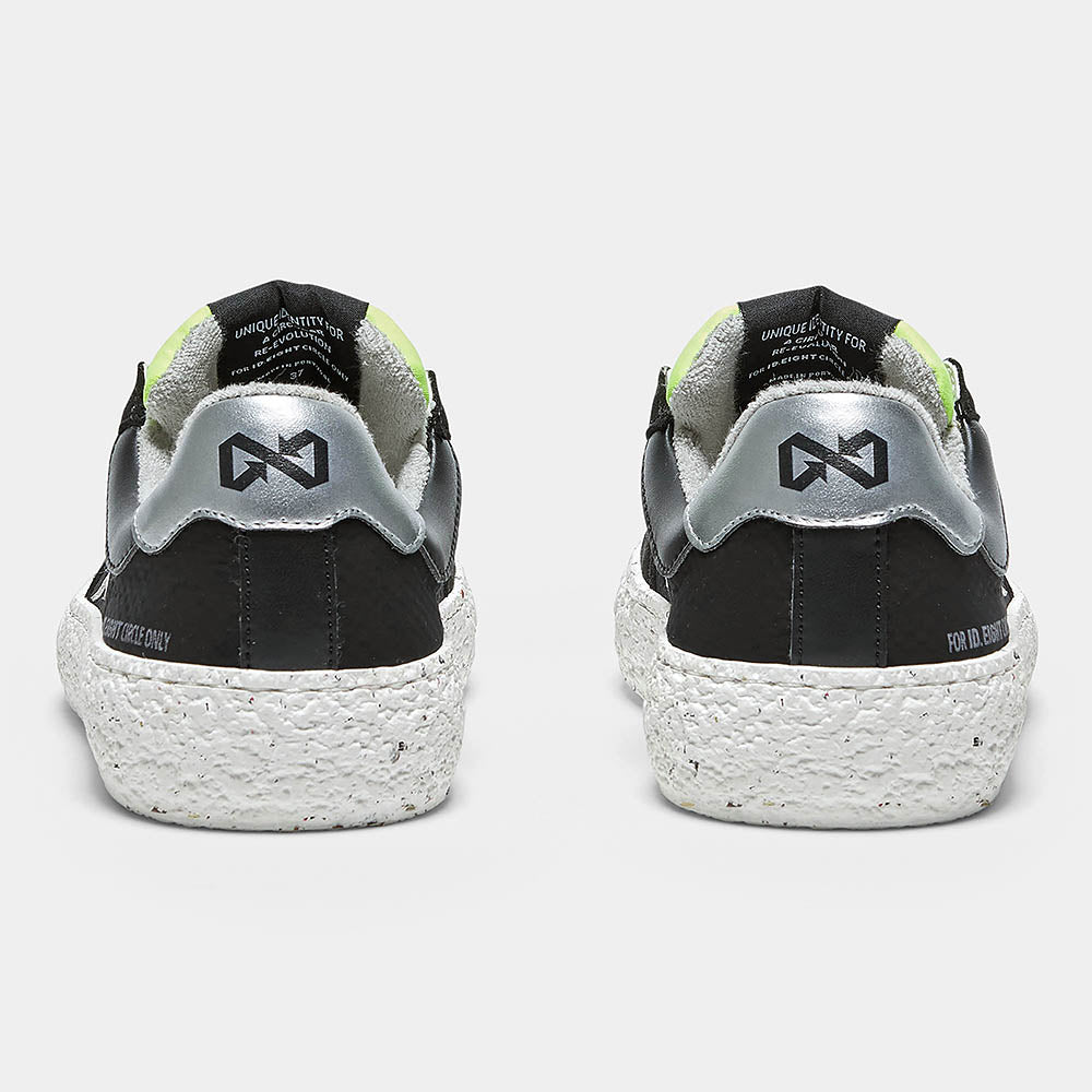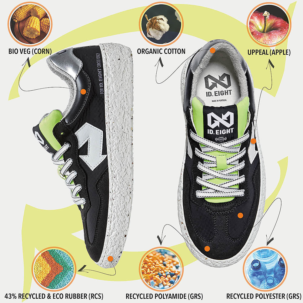 Scopri la potenza del minimalismo con URIDURI BLACK, una scarpa che combina l’eleganza del nero con accenti audaci e contemporanei. La linguetta giallo fluo aggiunge un tocco di energia vibrante, mentre il dettaglio silver regala una nota sofisticata e moderna. Perfetta per ogni occasione, dal casual al formale, questa scarpa è realizzata con materiali sostenibili e innovativi: BioVeg (a base di mais), Uppeal (da scarti di mela) e tessuti riciclati idrorepellenti. Il sottopiede antibatterico e antiodore assicura un comfort impeccabile per tutto il giorno. Con URIDURI BLACK, il classico nero si trasforma in un’espressione di stile e sostenibilità.
